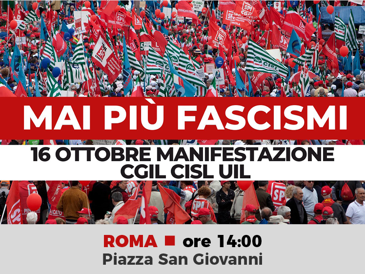 “Cgil, Cisl e Uil organizzano sabato 16 ottobre a Roma, una grande manifestazione nazionale e antifascista per il lavoro e la democrazia”. Lo affermano i segretari generali delle tre Confederazioni sindacali, Maurizio Landini, Luigi Sbarra e PierPaolo Bombardieri.