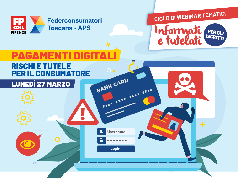 Lunedì 27 marzo (ore 17.30) nuovo appuntamento online con il ciclo di webinar “Informati e tutelati” promosso da Federconsumatori Toscana e Fp Cgil Firenze. Parliamo dei rischi dei pagamenti digitali e le tutele per i consumatore