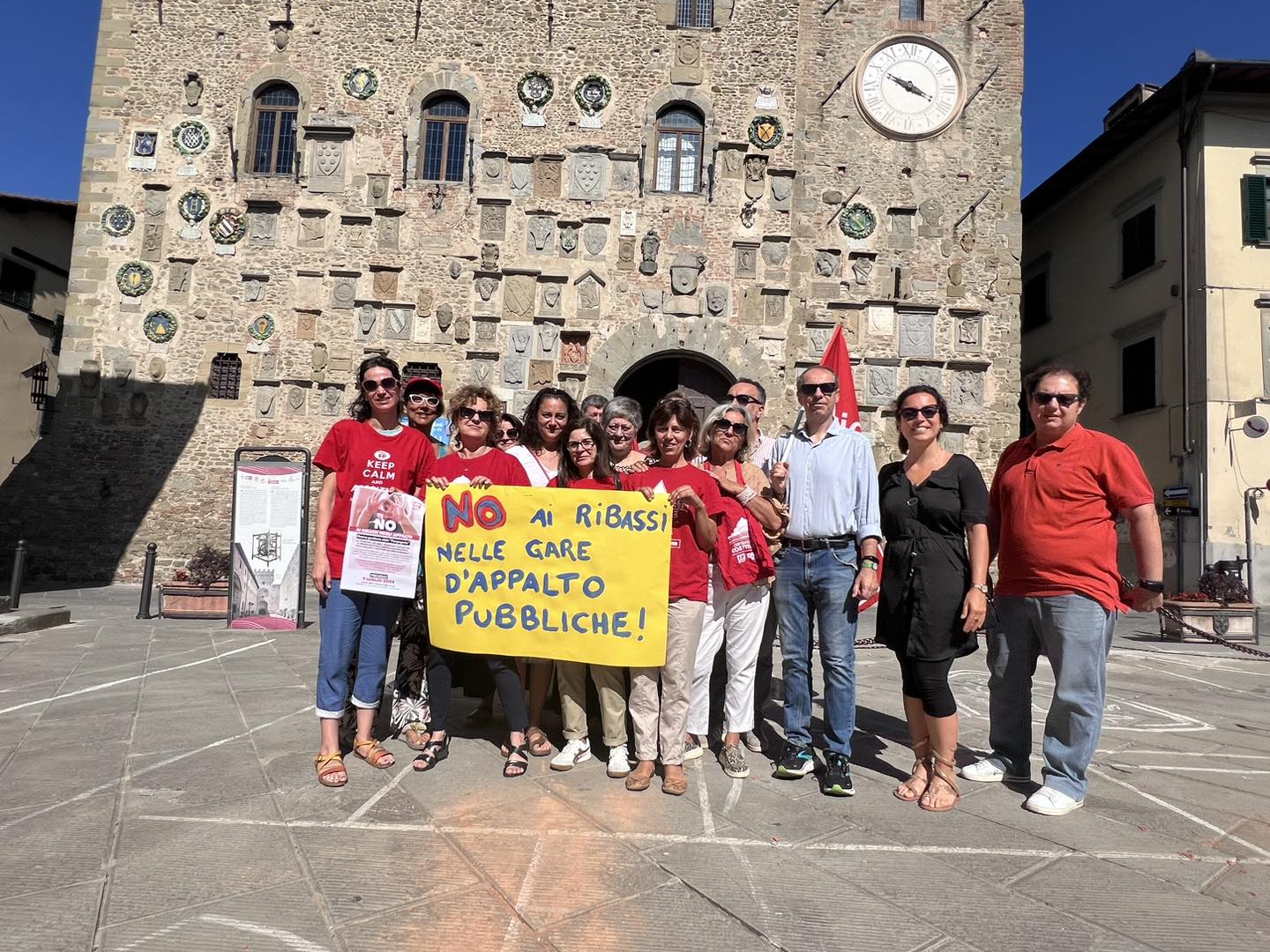 Firenze, 9-7-2024 – Asilo nido comunale Panpepato (sito a Pianvallico), stamani assemblea-presidio di Fp Cgil e lavoratrici a Scarperia, davanti al Palazzo dei Vicari per dire “no ai ribassi negli appalti, si mettono a rischio diritti sul lavoro e qualità del servizio”.