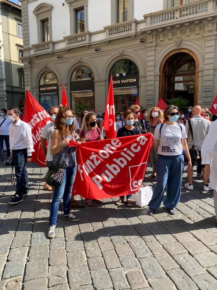 Oggi 16 settembre lo sciopero indetto per l’intera giornata è riuscito grazie all’alta adesione sui posti di lavoro e alla bella manifestazione in Piazza Strozzi a Firenze.